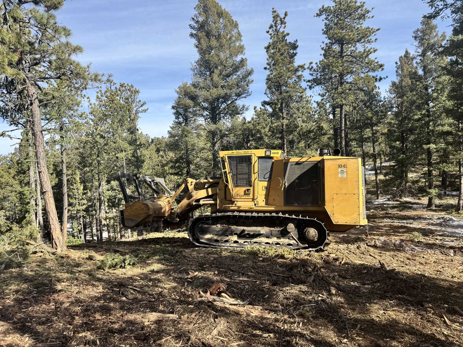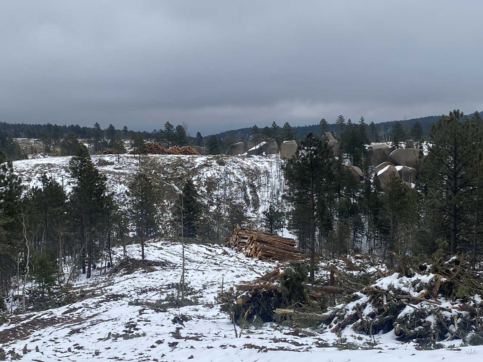 The United States Forest Service contracted VM West to perform 1,149 acres of timber treatment and removal at the periphery of Woodland Park, Colorado, thinning previously untreated, continuous canopy old-growth trees. This treatment successfully reduces the extreme fire danger for hundreds of residents by creating a healthy, sustainable forest mosaic. Secondarily, the treatment will reduce the severity of any fire activity, helping to eliminate intense fire behavior and the abundant soil and debris run-off that follows such events, wreaking havoc on a critical municipal reservoir water source located downslope of the project.